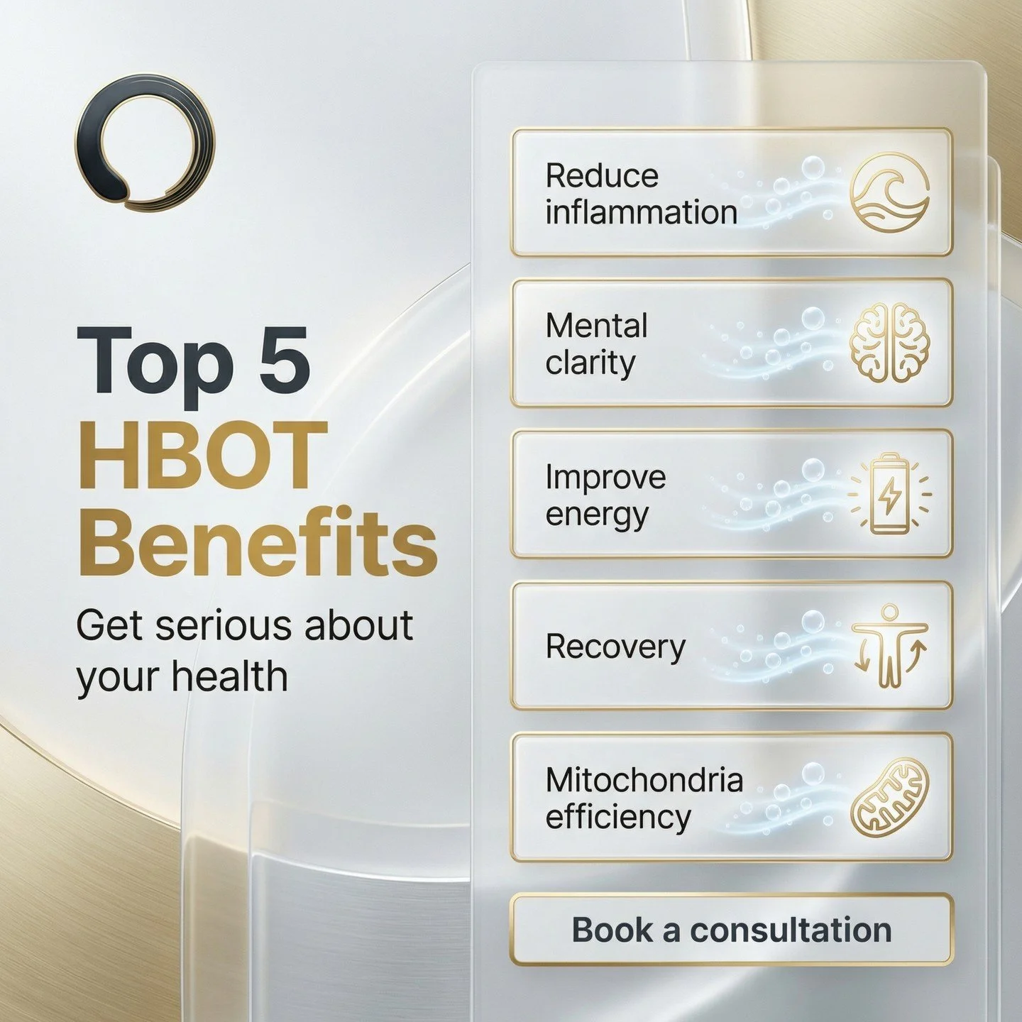 Mild hyperbaric oxygen therapy (mHbOT) is a wellness treatment that involves breathing pure oxygen in a pressurized chamber. This therapy aims to enhance overall well-being by boosting energy, healing, and cognitive function. Must be 18 years or older.